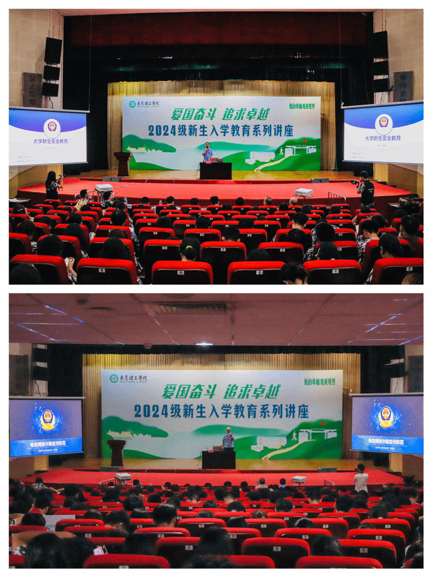 随后,东莞市公安局莞城分局的石智峰、叶景尧警官共同讲授安全教育部分。他们结合实际情况,向新生们普及了校园安全、网络安全、交通安全以及防范诈骗等方面的知识。叶景尧警官特别提醒新生们要提高警惕,注意保护个人财物和信息安全,避免陷入各种诈骗陷阱。石智峰警官则强调了遵守法律法规的重要性,并鼓励新生们积极维护校园和谐稳定。