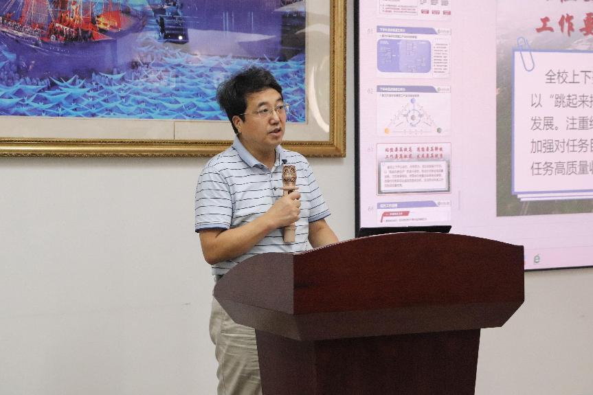 黎伟副院长在会上就学校关于省教学质量与教学改革工程项目申报的相关内容及要求阐述了四个方面的重要议题:调停课管理规定、课堂管理的强化、各二级学院反馈的问题,以及本学期教育教学质量综合评价。他指出,全体教师应当以实际行动严整课堂秩序,全力以赴展现教学风采。