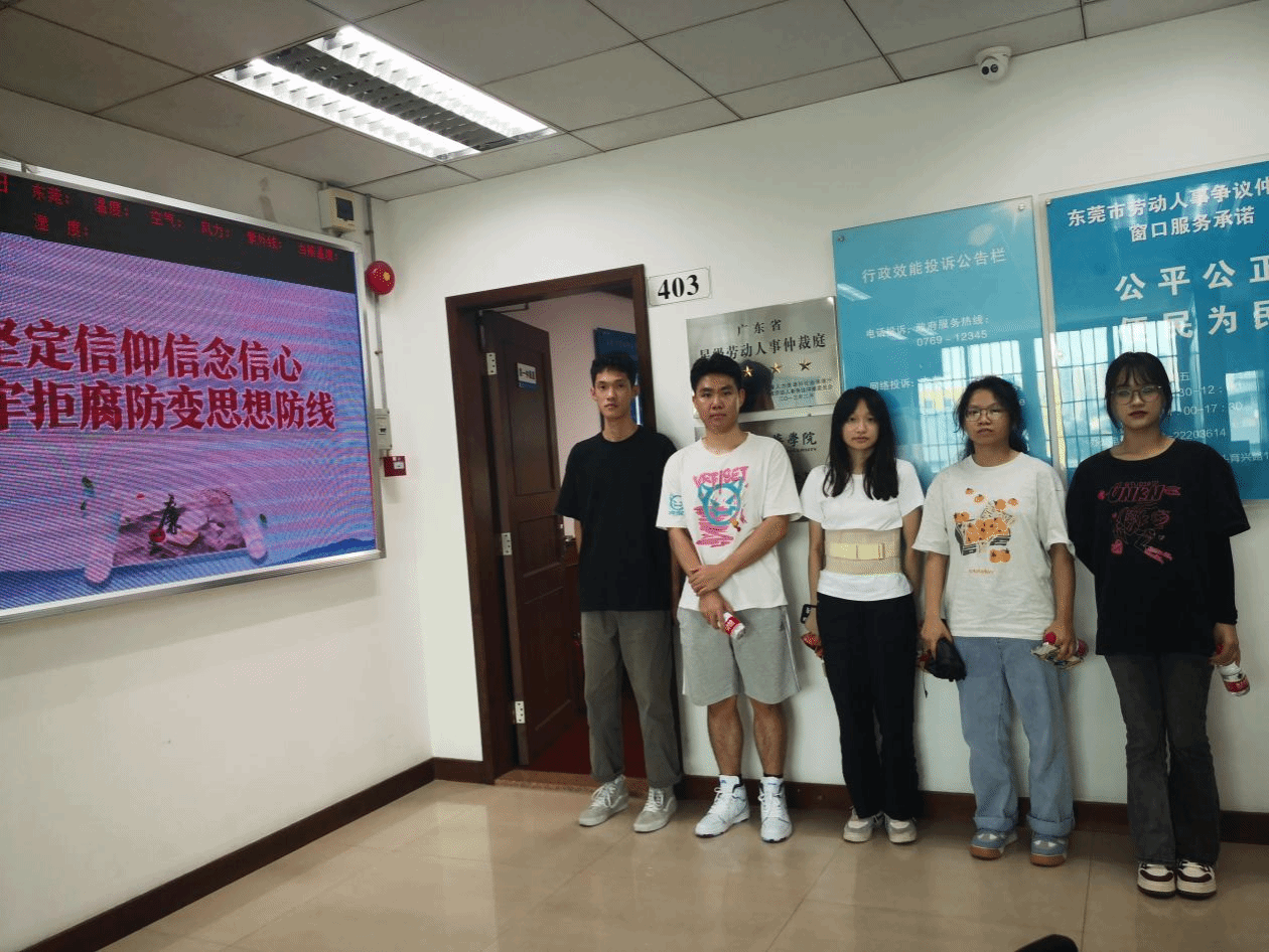 2023年9月5日下午,sunbet,sunbet官网2022级和2021级人力资源管理专业的陈铮等5位同学在经管学院工商管理系人力资源管理专业程守红老师的带领下,再次走进东莞市劳动人事争议仲裁院的仲裁庭,零距离观摩真实劳动人事争议仲裁庭审全过程,亲身感受公正严肃的仲裁庭审现场,了解劳动争议案件处理全流程,在观摩实践中深化课程所学劳动法律法规知识应用。
