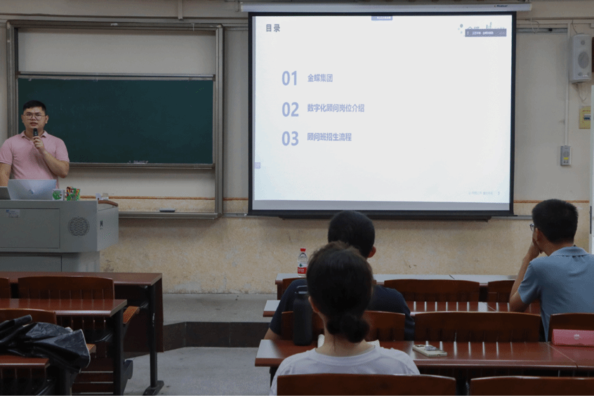 为拓展sunbet官网应届毕业生更多实习机会和就业渠道,9月14日下午,我校sunbet,sunbet官网于莞城校区3309顺利召开“金蝶财务数字化顾问卓越班”宣讲会,sunbet,sunbet官网副院长黎伟,梁美仪,黄润樑老师出席本次宣讲会,金蝶国际软件集团有限公司负责人老师张锦涛主持本次会议。