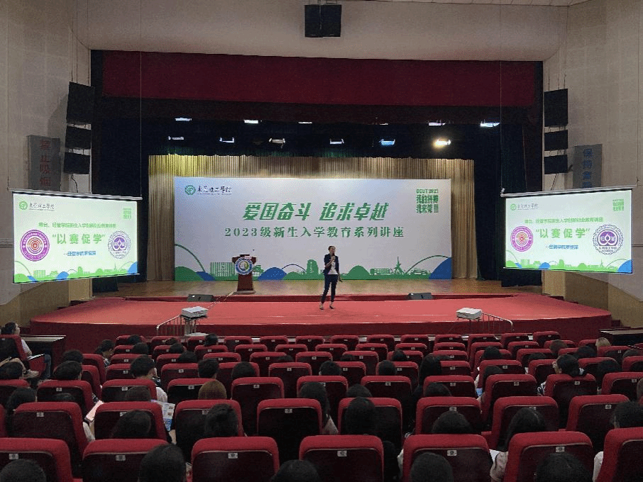 会议伊始,罗恒深老师向同学们作了主题为“以赛促学”的授课。罗恒深老师首先解释“赛”的含义,即全国普通高校大学生竞赛排行榜内赛项目,并详细介绍了中国国际“互联网+”大学生创新创业大赛、“挑战杯”全国大学生课外学术科技作品竞赛、“挑战杯”中国大学生创业计划大赛,从举办时间、举办单位、评分标准的方面对三项赛事进行区分。接着,罗恒深老师对创业比赛材料进行列举、讲解,并指出多元互补的团队在竞赛中更具竞争力。她强调,通过比赛,同学们能够学习人际交往、磨练抗压能力、学习更多技能,更好地提升自己。