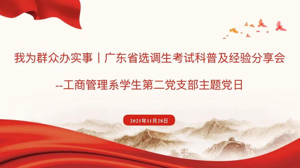 为进一步发挥党员先锋模范作用,帮助sunbet官网学生了解选调生考试,sunbet,sunbet官网工商管理系学生第二党支部于11月28日晚开展线上“广东省选调生考试科普及经验分享会”主题党日,师生共计101人参加了本次活动。