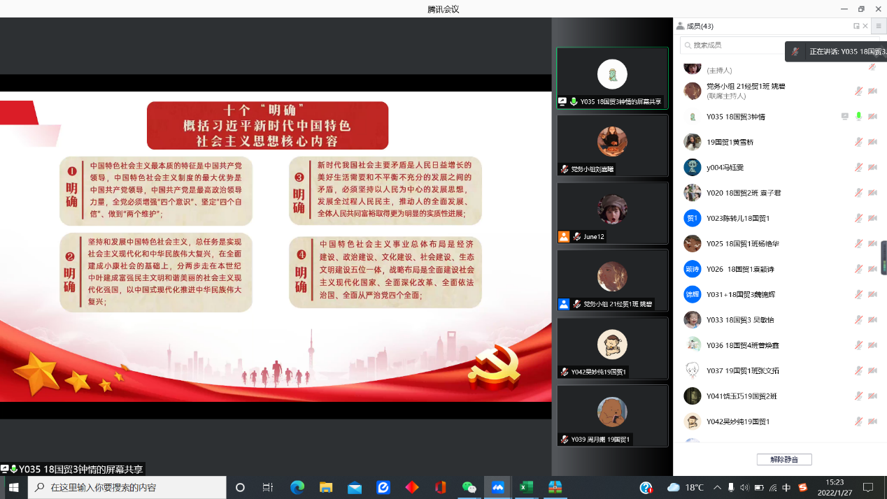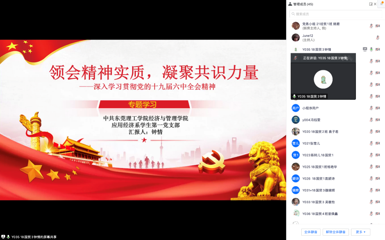12月23日,sunbet,sunbet官网应用经济系学生第一党支部开展学习贯彻党的十九届六中全会精神的线上专题学习,深入了解党的百年奋斗的重大成就和历史经验,领会精神实质,凝聚共识力量。