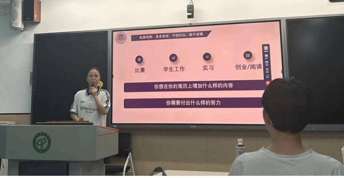 在“开学第一课,规划我先行”主题环节中,梁梦宁学姐和李帅学长分别进行履历与经验的分享以及学习目标与职业规划的讲解,同时耐心回答同学们关于证书考试、英语学习等方面的问题。现场互动热烈,氛围活跃,有效激发了同学们的学习热情与职业规划意识,促进班级内部的知识共享与经验传承。