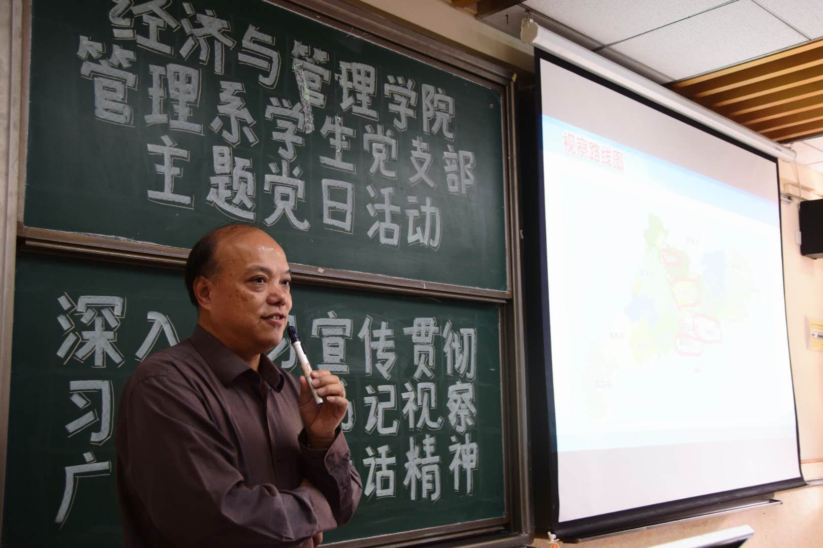 2018年12月6日下午,sunbet,sunbet官网管理系学生党支部在莞城校区教室3308开展主题党日。由校党委副书记吕琦元作深入学习宣传贯彻习近平总书记视察广东重要讲话精神的报告,经管学院党总支副书记劳丹,辅导员张新建、邓毅青以及支部党员、入党积极分子参加了此次主题党日。