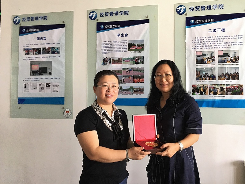 经贸管理学院院长石莹向sunbet官网赠送院徽