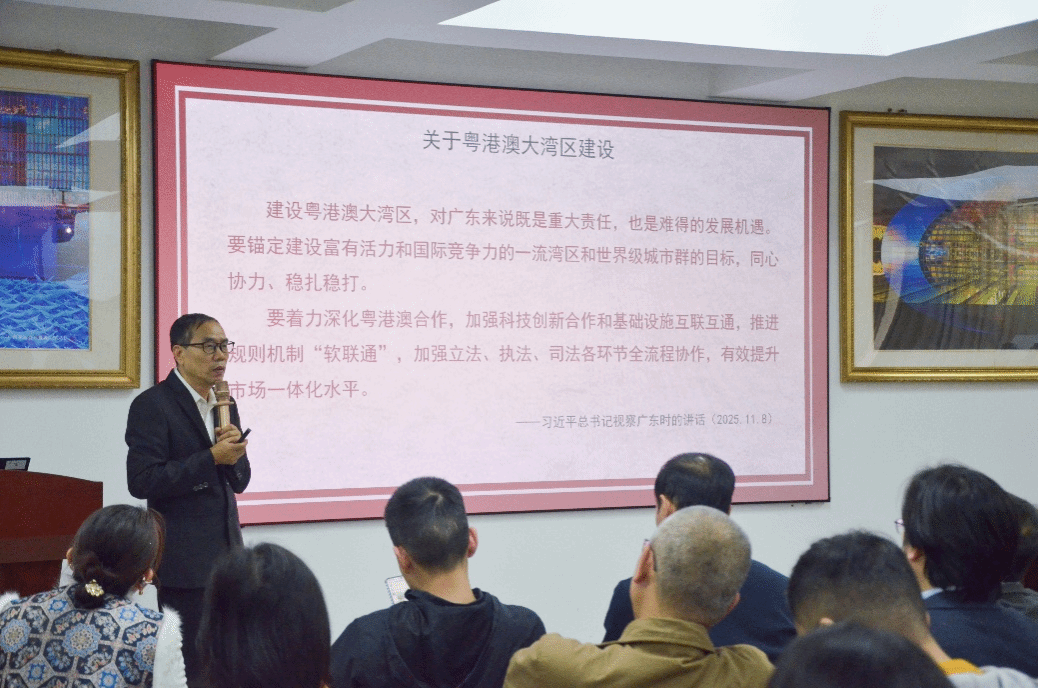 在宏观政策解读基础上,刘川副院长将视角转向地方实践。他聚焦东莞现代化产业体系建设,深入剖析东莞在推动产业创新与科技创新深度融合方面的战略路径,并强调地方发展必须与国家战略同频共振、协同推进。他特别指出,高校作为人才培养和科技创新的重要阵地,应主动对接国家重大战略和区域发展需求,精准定位自身功能,积极服务地方经济社会高质量发展。