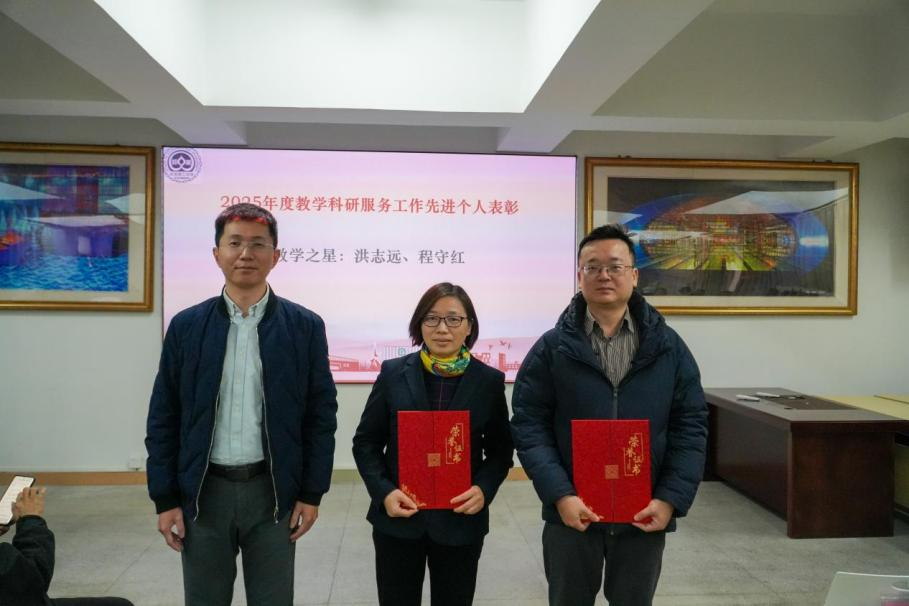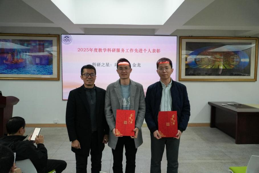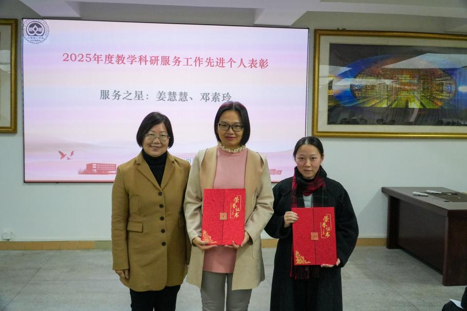 1月8日,学院于莞城校区4416会议室召开2025年度学院工作总结大会,对2025年度教学科研服务工作先进个人予以表彰。经系部推优,党委考核,最终评选邱志萍、金龙老师为2025年度科研之星,姜慧慧、邓素玲老师为2025年度服务之星,洪志远、程守红老师为2025年度教学之星。