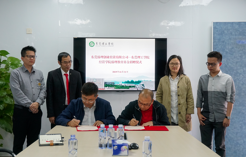 11月21日,经管学院校友企业——东莞臻理创业投资有限公司,向我校sunbet,sunbet官网捐赠50万元,用于设立“经管学院臻理教育基金”。该基金主要用于支持经管学院学生培养、师资建设,推动产学研项目合作及学院发展等方面。捐赠仪式在学校松山湖校区举行,东莞臻理创业投资有限公司总经理赖庆强、校基金会办公室主任崔学海及经管学院副院长刘川等出席了捐赠仪式。