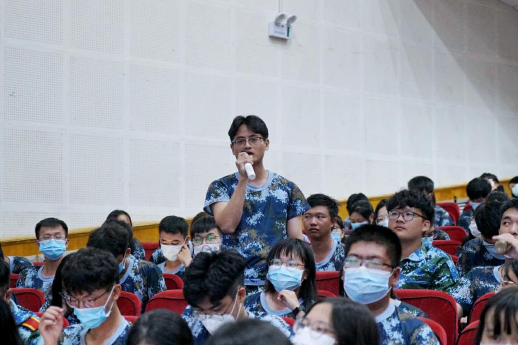 随后,柴老师还就招兵入伍进行了宣传,指出从军是一件无比荣耀的事情,并邀请了赵东岳、吴佳铭两名退伍学长分享其对入伍的感悟。最后,柴老师解答了同学们的疑惑,希望同学们能珍惜现在来之不易的生活并为祖国做出自己的一份贡献。
