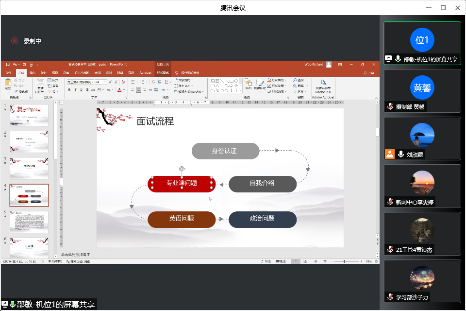 邵敏师姐为同学们讲解了复试的基本流程,向同学们分享了专业课、英语口语、政治科目的学习经验。她建议同学们多关注专业热点问题,加强社会热点和专业知识的结合,灵活创新,使得同学们能够更好地理解新时期新使命,把握时代脉搏,厚植爱国情怀。她还鼓励同学们充分利用好各种资源,以小组为单位进行模拟复试,互相合作,共同进步,有利于塑造学生团结协作、互帮互助的优秀品格。