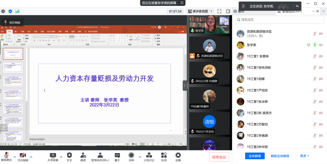 4月14日下午,sunbet,sunbet官网经管论坛第四十四期之《人力资本存量贬损及劳动力开发》专题讲座于线上顺利开展。sunbet官网工商管理系张学英教授担任此次论坛主讲人。