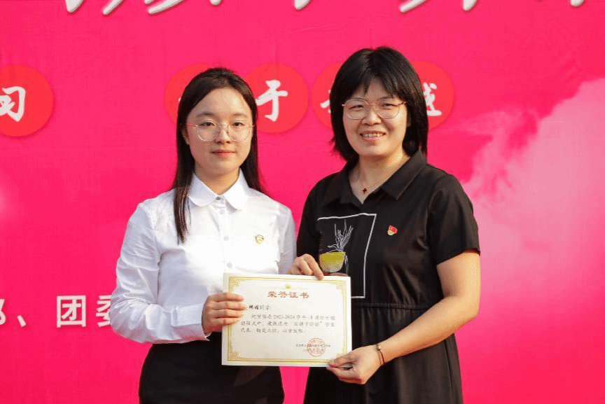 (党委学研工部副部长柳卓君为黄炜程同学颁发荣誉证书)