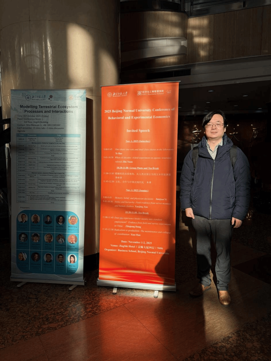 11月1—2日,洪志远老师代表本院,出席北京师范大学举办的“行为与实验经济学研讨会”。他全程参与特邀嘉宾主题报告、AI相关议题分会场讨论,并同多位学者展开交流。