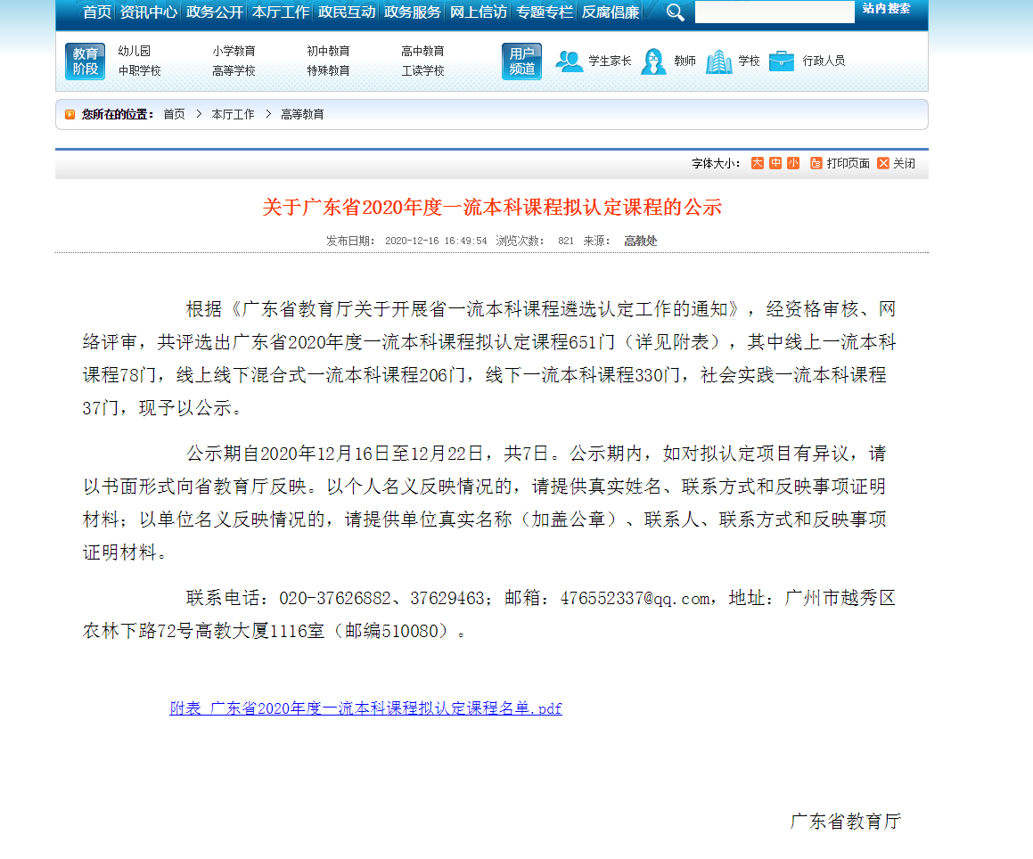 根据《广东省教育厅关于开展省一流本科课程遴选认定工作的通知》,经资格审核,网络评审,共评选出广东省2020年度一流本科课程拟认定课程651门。其中sunbet官网刘继云院长《微观经济学》榜上有名
