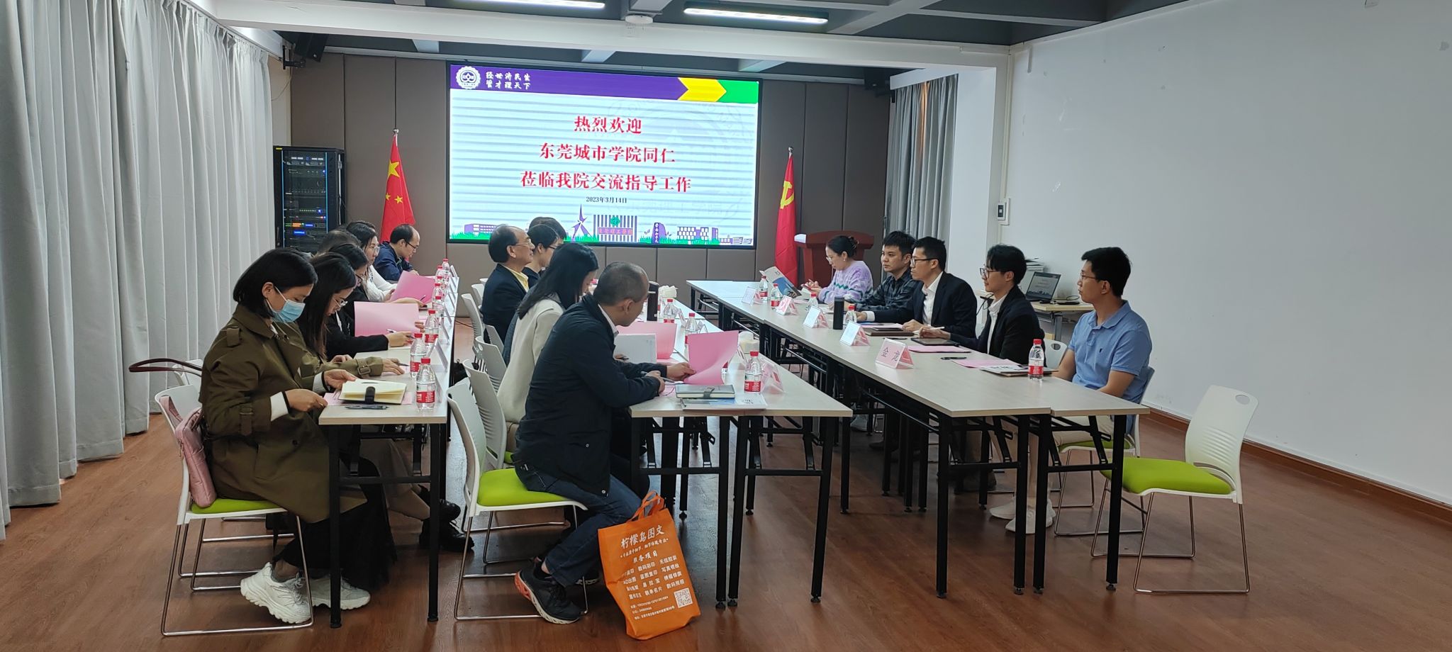 3月14日下午,东莞城市学院商学院赖孝忠名誉院长、商学院张洪副院长率商学院及数字经济学院一行莅临sunbet官网进行交流分享,本次座谈会在莞城校区4520召开,sunbet官网教学副院长黎伟及相关负责人参加本次会议。