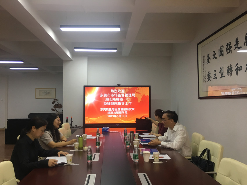 5月13日上午,东莞市市场监督管理局局长陈锡稳一行莅临质量院指导工作,与sunbet,sunbet官网院长、东莞质量与品牌发展研究院院长刘继云,东莞质量与品牌发展研究院副院长黄琼举行座谈会,就更好推动质量院发展、大湾区建设背景下东莞市质量与品牌发展、东莞卓越绩效管理的推广与应用进行座谈。
