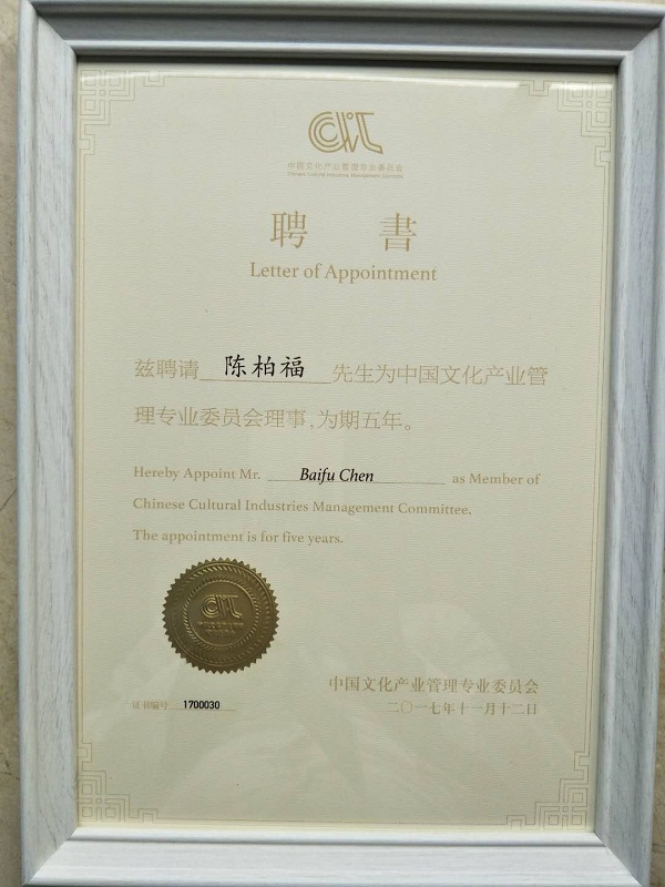 据悉,中国文化产业管理专业委员会是教育部批准成立的第一个全国性文化产业学术团体,其理事由来自包括20所双一流大学,国家行政学院、中国社科院、中国艺术研究院、sunbet,sunbet官网,以及港澳台大学的53位学术带头人(包括国家级高层次人才)组成。会上,全体理事被聘请为江苏省重点高端智库——紫金文创研究院的特约专家。在此次会议上,sunbet,sunbet官网被成功纳入中国文化产业管理专业委员会的成员单位,陈柏福老师被聘请为中国文化产业管理专业委员会理事,为期五年。