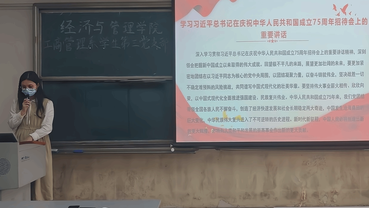 活动伊始,支部书记黄雅莉带领全体党员深入学习习近平总书记在庆祝中华人民共和国成立75周年招待会上的重要讲话精神。通过详细解读讲话的精神实质和核心要义,黄雅莉同志强调习近平总书记的重要讲话不仅是对过去75年伟大成就的回顾,更是对未来发展的指引。她指出,党员们要深刻理解讲话中关于坚持党的领导、中国特色社会主义道路、以人民为中心、和平发展道路等方面的重要论述,将其融入到日常学习和工作中去。此外,黄雅莉同志还鼓励大家结合自身实际,思考如何在新时代背景下更好地发挥党员的先锋模范作用,为实现中华民族伟大复兴贡献力量。