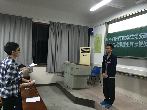 会上,学生党支部书记邓毅青讲解了《关于在“两学一做”学习教育中开展专题组织生活会和民主评议党员工作的通知》的文件精神,要求党员们紧紧围绕学习贯彻习近平总书记系列重要讲话精神,自觉践行党章要求,分别从加强学风建设,提升综合素质,提高创新创业能力,在带领同学共同进步等方面,认真查找每名党员存在的不足问题,进一步增强政治意识、大局意识、核心意识、看齐意识,发挥先锋模范作用,以实际行动推动学校的建设和发展。