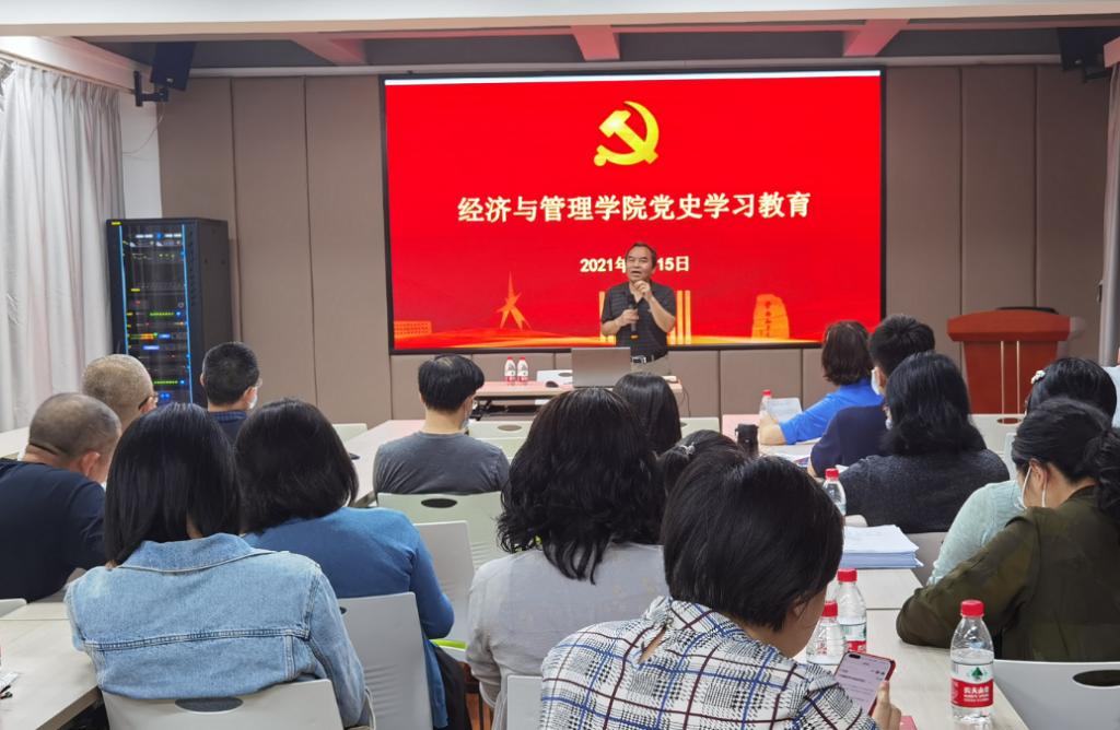 本次党史教育首先由经管学院党委书记杨继学同志传达了学校党委中心组(扩大)学习会议精神,一是提醒教师们要在各项工作中提高政治站位,把党史的学习和素质教育有机结合起来,建设高质量教育体系;二是公布了“我为群众办实事”实践活动的落实情况,践行了从群众中来到群众中去的党的光荣传统;三是传达了校党委对经管学院在“学习强国”学习中提升较快的表扬。