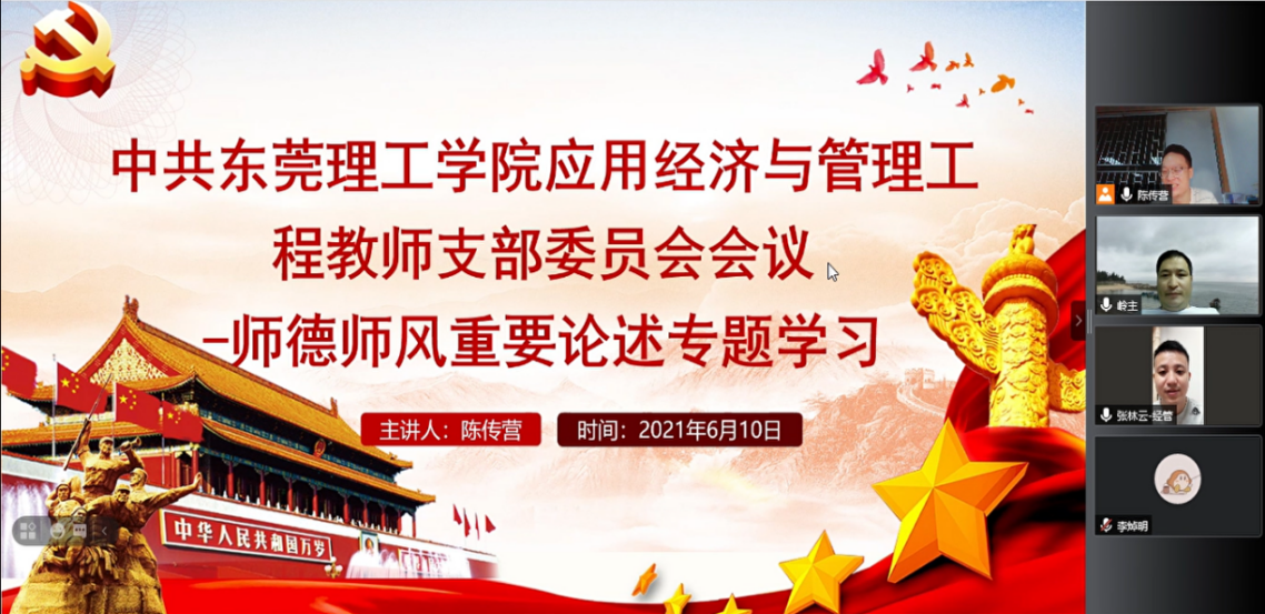 2021年6月10日晚,sunbet,sunbet官网应用经济与管理工程教师党支部召开支部委员会,对如何进一步强化师德师风建设进行专题线上学习讨论。