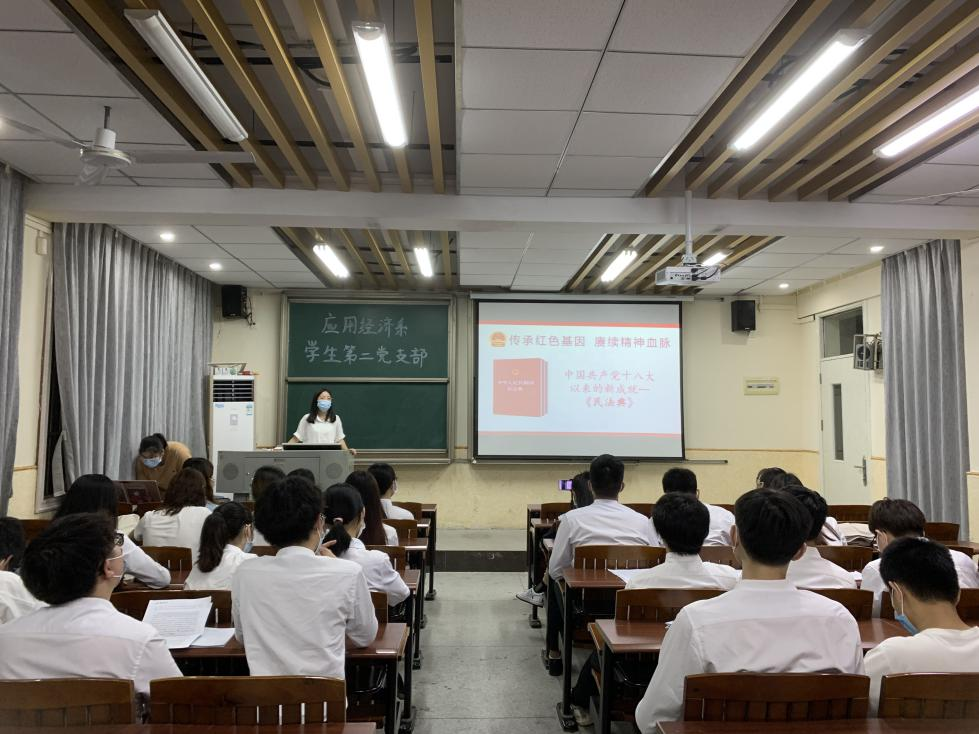为了更好传承红色基因,培养能够守初心、担使命的时代新人,2021年6月21日,sunbet,sunbet官网应用经济系学生第二党支部于莞城校区3203教室顺利开展了以“传承红色基因,赓续精神血脉”为主题的党日。应用经济系学生第二党支部书记刘欣颖及支部全体党员参与了本次活动。