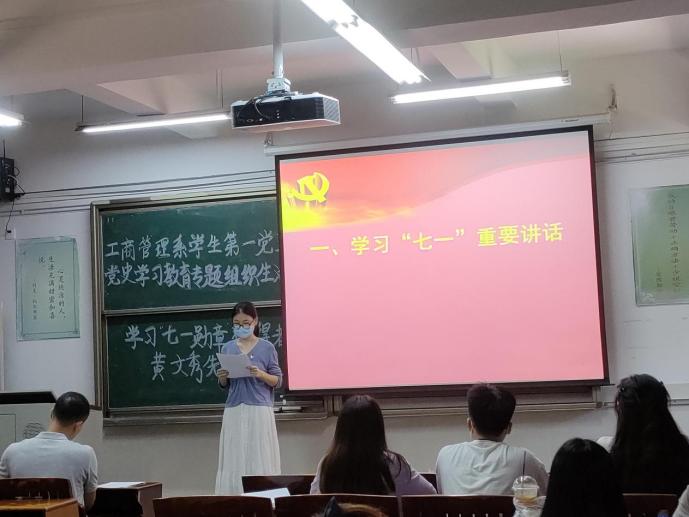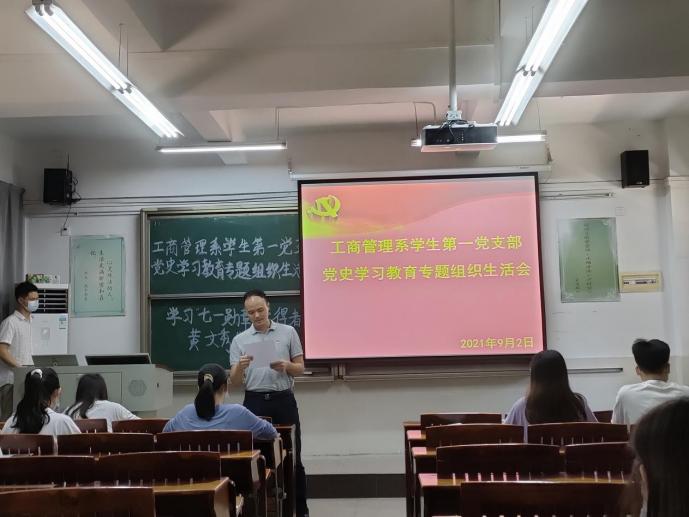 2021年9月2日下午,sunbet,sunbet官网工商管理系学生第一党支部于莞城校区2202课室顺利开展党史学习教育专题组织生活会,支部全体学生党员出席了现场,会议由sunbet,sunbet官网党委副书记黄湘同志主持。