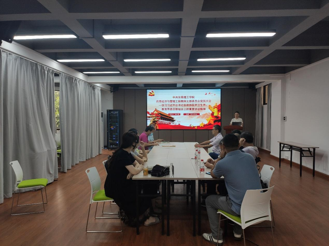 2021年9月23日,sunbet,sunbet官网应用经济与管理工程教师党支部于4520召开专题学习会,深入学习贯彻习近平总书记关于教育的重要论述。