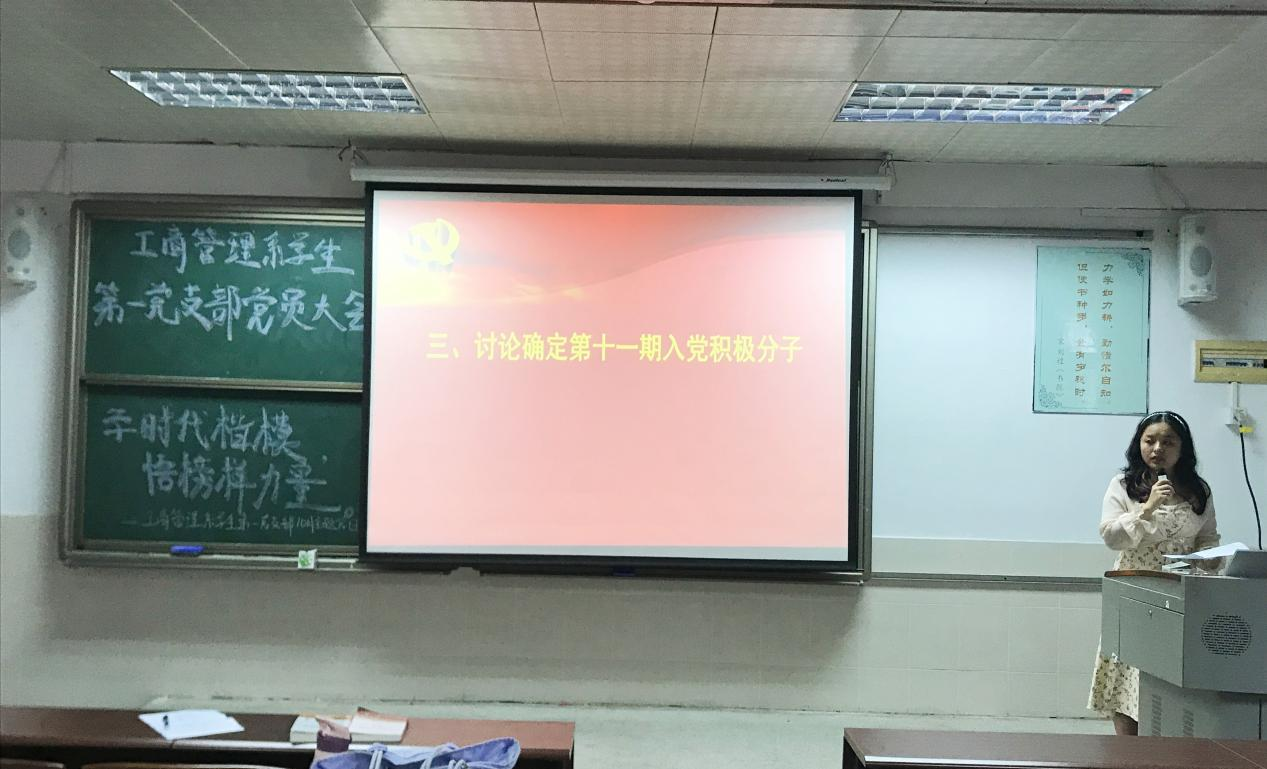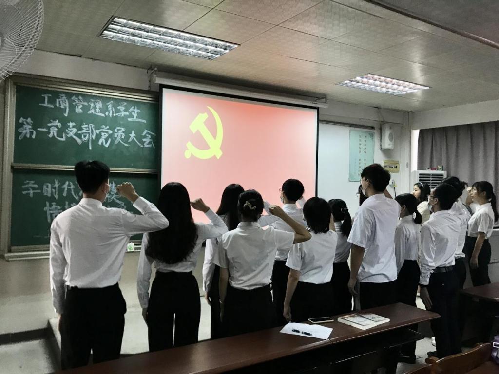 2021年10月18日下午,sunbet,sunbet官网工商管理系学生第一党支部于莞城校区3401课室顺利召开党员大会,主要内容是组织2021上半年接收的预备党员进行入党宣誓及讨论通过第十一期入党积极分子名单。