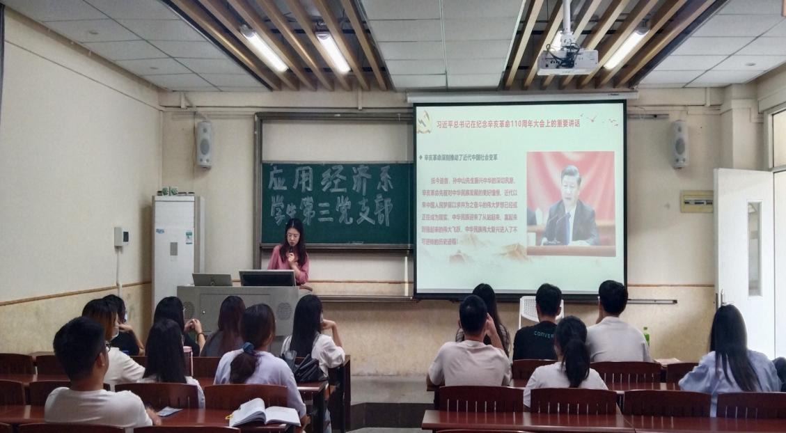 2021年10月18日,sunbet,sunbet官网应用经济系学生第三党支部于莞城校区3309课室顺利举行“铭记历史,砥砺前行”主题党日。学习会由支部书记叶琦玮同志主持,全体学生党员出席了现场。