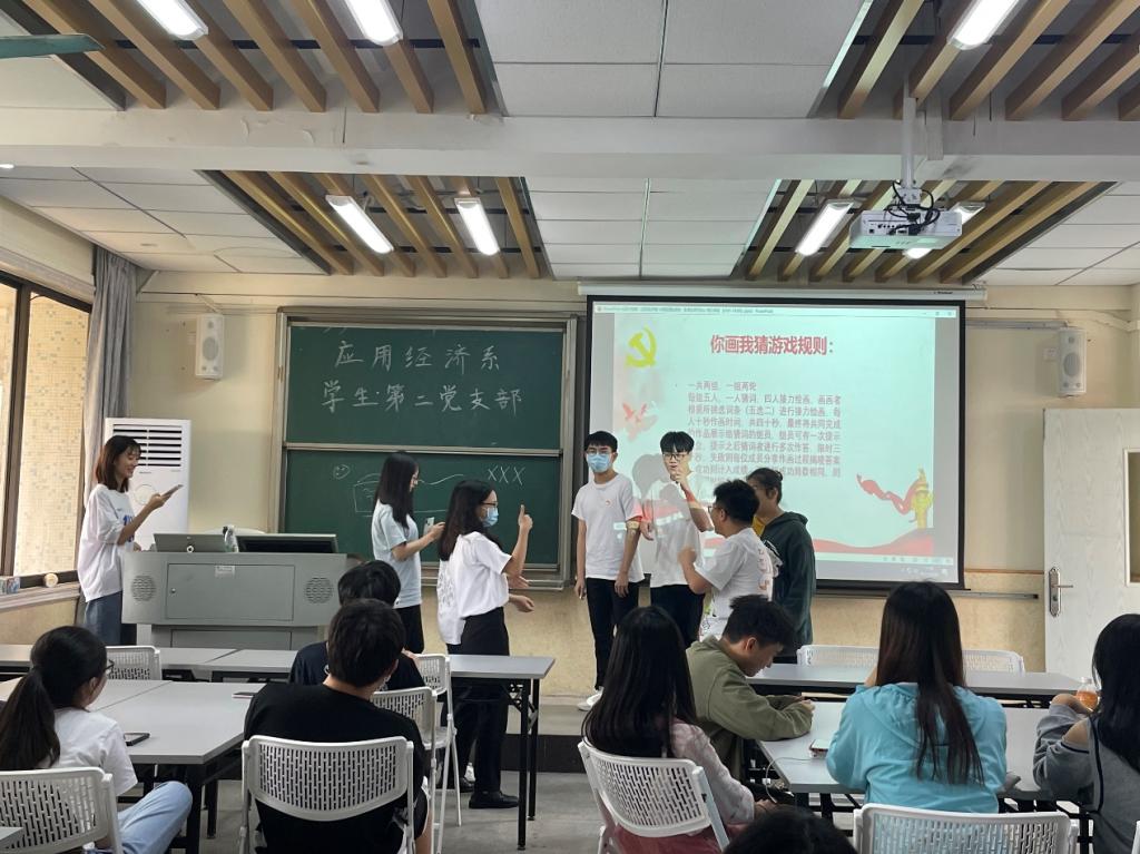 为了更好了解中华民族伟大复兴的奋斗历程,继承和发扬党的优良传统和作风,2021年10月28日,sunbet,sunbet官网应用经济系学生第二党支部于莞城校区3302教室顺利开展了以“你画我猜绘使命,薪火相传守初心”为主题的党日活动。应用经济系学生第二党支部书记刘欣颖及支部全体党员参与了本次活动。