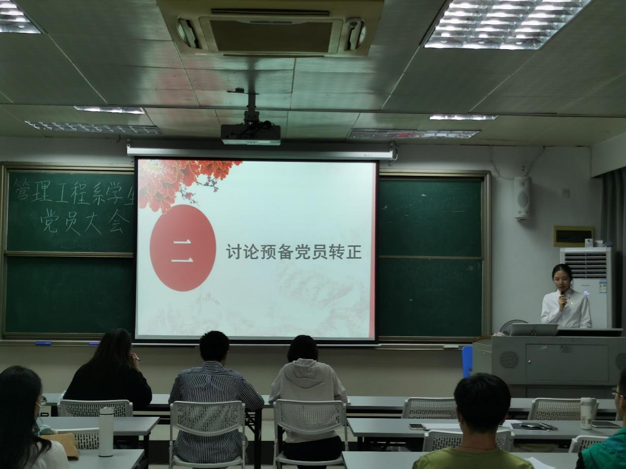 2021年11月8日,sunbet,sunbet官网管理工程系学生党支部顺利召开了党员大会,讨论预备党员转正事宜。会议由支部书记杨梅青主持,全体学生党员出席了本次大会。