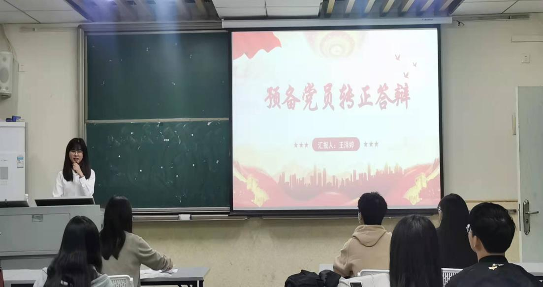 会议讨论了王泽婷等5位预备党员的转正问题。支部书记刘欣颖向大会报告预备党员转正答辩会情况,5位预备党员分别汇报了自己在一年预备考察期的具体表现情况,经与会党员发表意见,与会正式党员无记名投票表决等环节,最终形成讨论通过了王泽婷等5位预备党员转正的决议。
