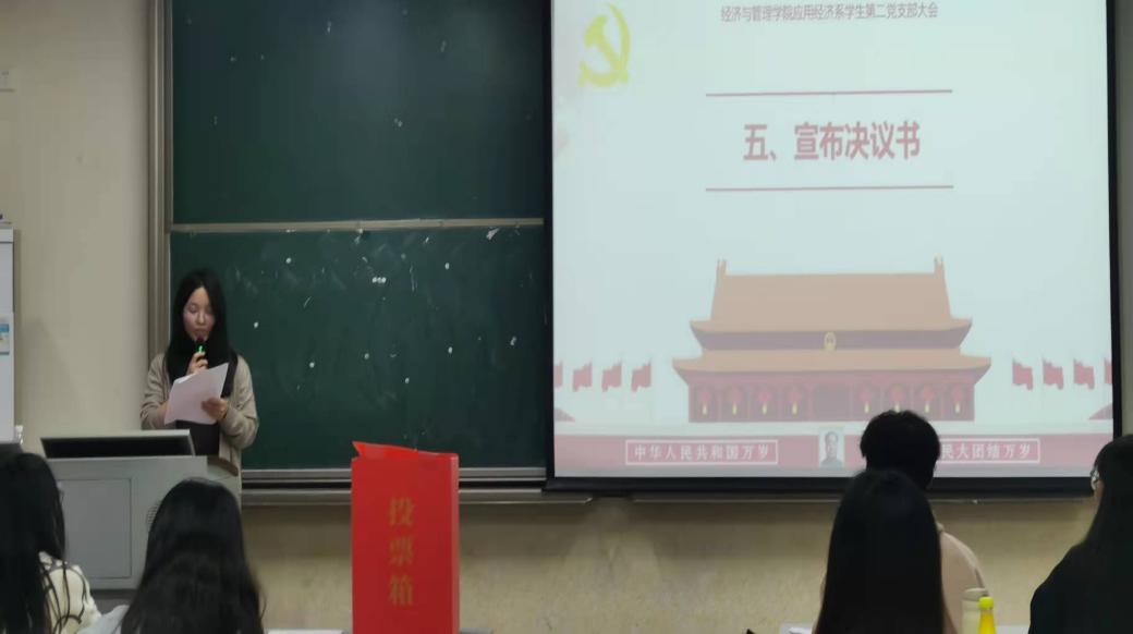 2021年12月7日晚上,sunbet,sunbet官网应用经济系学生第二党支部于莞城校区3303课室顺利召开支部党员大会,讨论王泽婷等5位预备党员转正的事宜。应用经济系学生第二党支部书记刘欣颖主持会议。