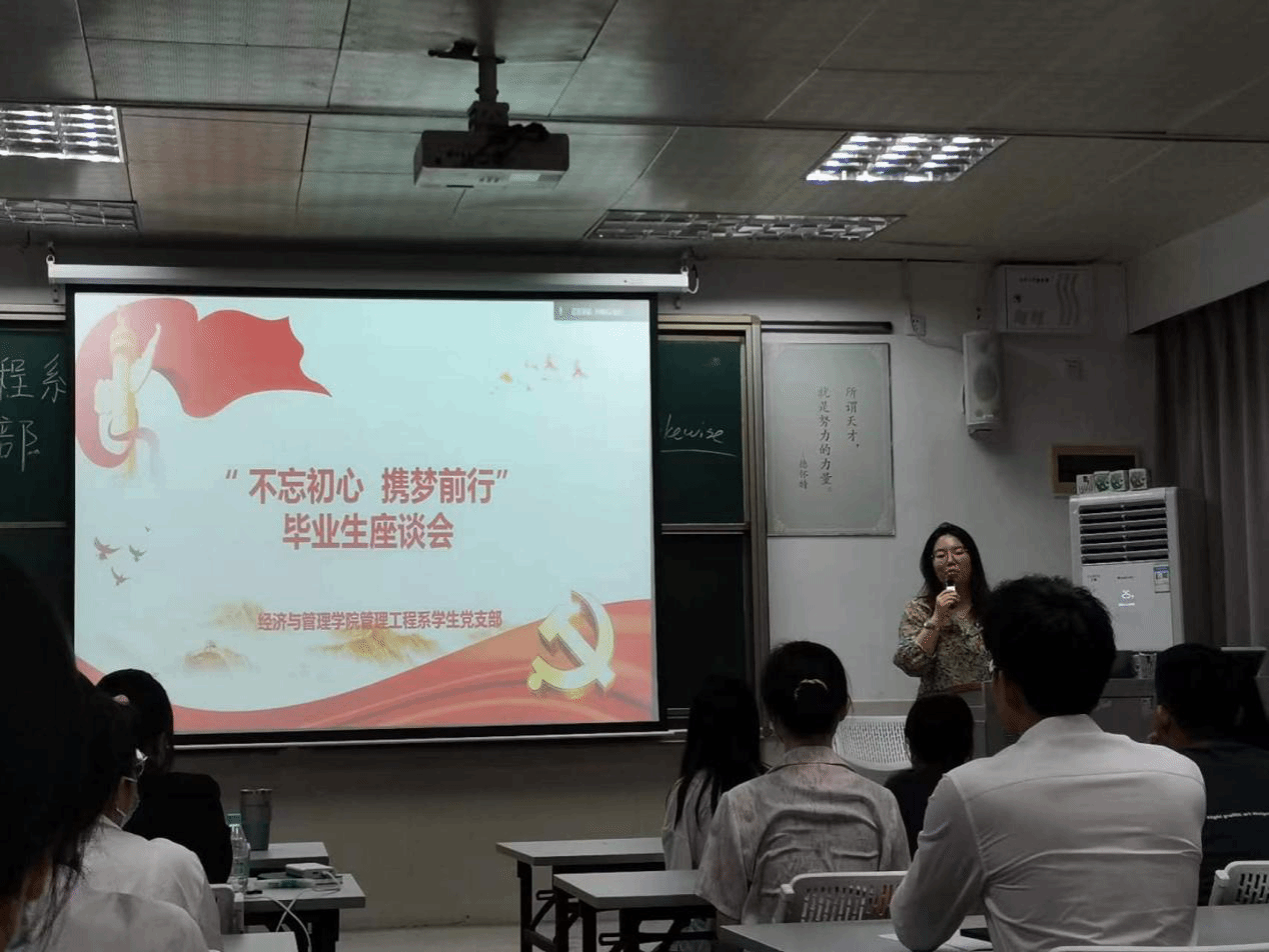 2022年6月22日下午,sunbet,sunbet官网管理工程系学生党支部于莞城校区3402教室顺利开展了“不忘初心,携梦前行”主题党日,支部书记杨梅青及全体学生党员参与了此次活动。