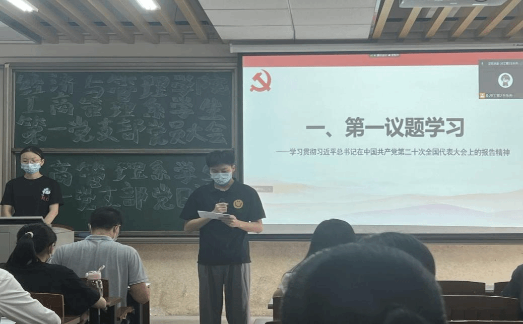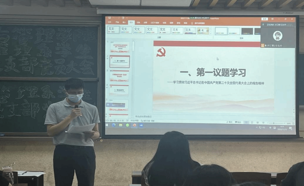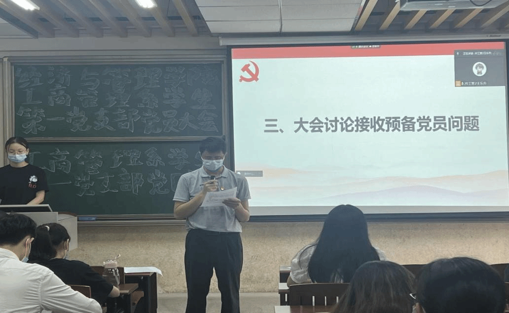 2022年11月12日上午,sunbet,sunbet官网工商管理系学生第一党支部于莞城校区3308教室顺利召开党员大会,讨论接收预备党员的相关事宜,sunbet,sunbet官网党委副书记黄湘、支部书记梁建川及全体学生党员出席了本次会议。