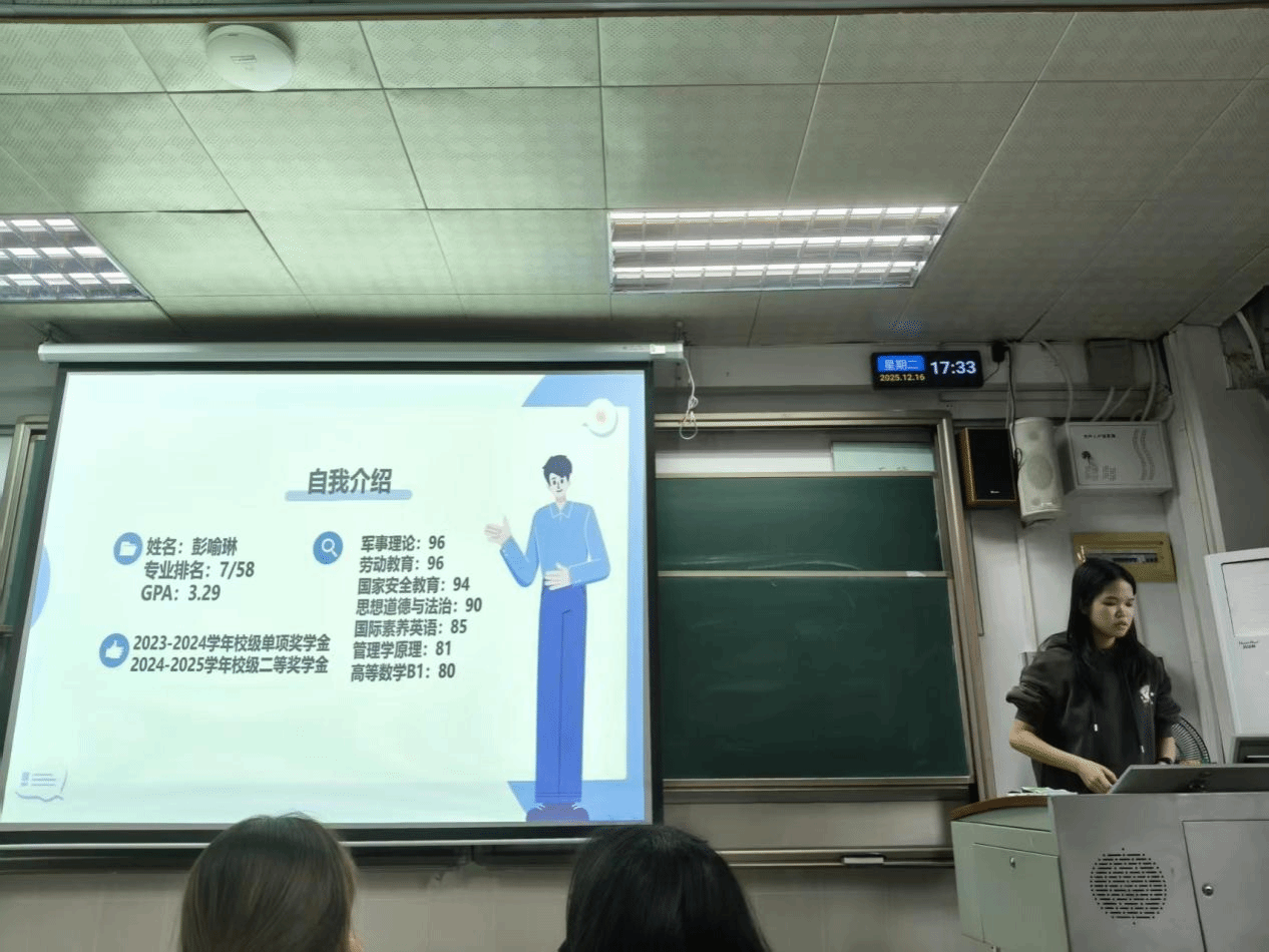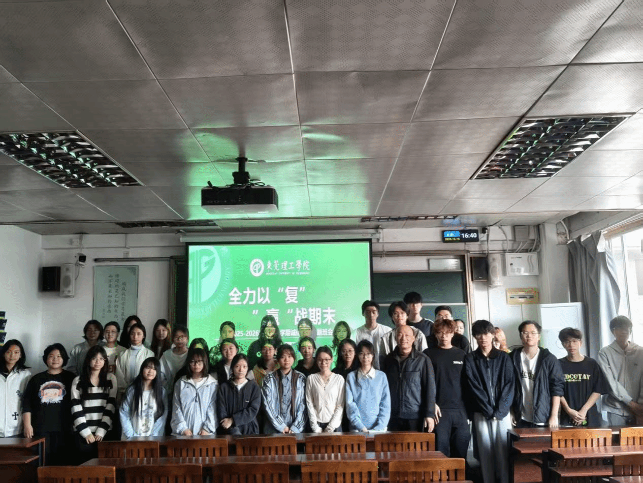为进一步加强学风建设,严肃考风考纪,引导学生牢固树立诚信应考意识并掌握科学备考方法,2025年12月16日,2025级人力资源管理2班在莞城校区3408教室成功举办“全力以‘复’,‘赢’战期末”主题班会。本次班会由班长朱雅晴主持,班主任龚志周老师全程指导,助班彭喻琳应邀分享经验,班级39名学生悉数到场参与。