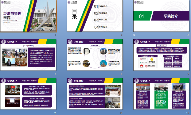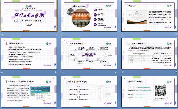 为激发学生主动宣传学院的动力,以贴近考生的朋辈视角介绍学院,经管学院开展了“经管风采由你展示”PPT大赛,同学们踊跃参赛,共收到224份作品,同学们抓住自己认为学院值得宣传的点进行设计,突破了官方一板一眼的限制,体现了学生的自主、青春特性,获奖PPT经整合后将成为学院招生的重要宣传品。本学期学院官方视频号也推出学生制作的专业小知识视频,如“饥渴营销”“虚假营销”等,利用短视频易于传播特性宣传学院、宣传专业,以学生视角讲好学院故事。
