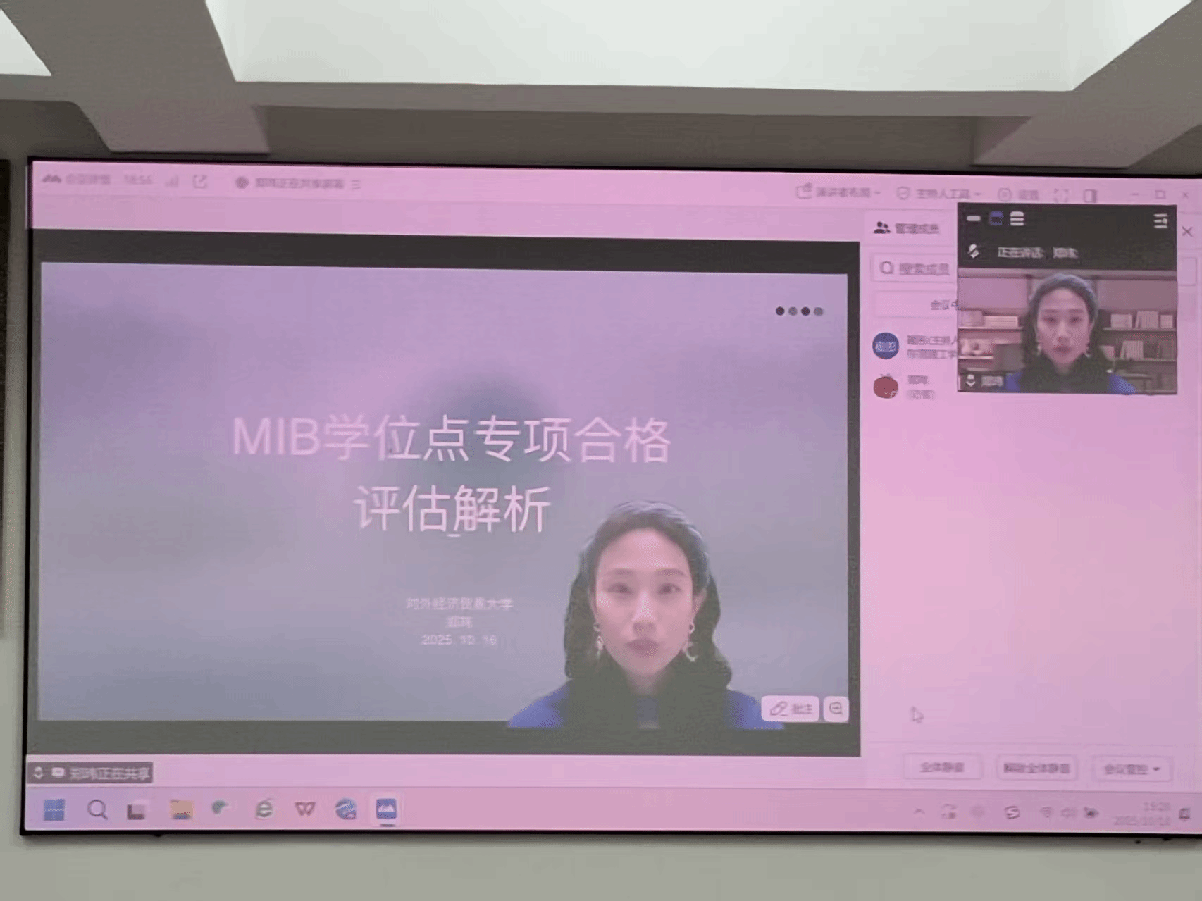 10月16日,学院邀请国务院学位办全国国际商务专业学位研究生教育指导委员会郑玮主任为sunbet官网作《国际商务硕士专业学位(MIB)授权点专项合格评估方案解析》专题讲座。讲座为腾讯会议线上形式,在莞城4416开展,由学院副院长刘川主持,全体院领导、学院教指委成员、研究生导师、研究生任课老师参加讲座。