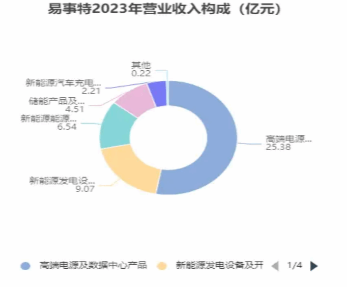 易事特的主营业务集中在智慧电源、数据中心和智慧能源三大战略板块。在智慧电源领域,易事特提供包括UPS/EPS电源、电力电源、通信电源等在内的多样化产品,满足不同行业需求。数据中心业务方面,公司致力于模块化数据中心、移动数据中心的研发与建设,为数据存储与处理提供高效解决方案。智慧能源板块则涵盖了储能系统、微电网系统、光伏逆变器等产品,推动能源的高效利用与可持续发展。公司致力于提供高端电源设备、数据中心产品、光伏和储能产品、电动汽车充电桩等,这些产品广泛应用于金融、通信、政府、互联网、交通、医疗等多个领域,显示出公司在提供综合解决方案方面的全能能力。