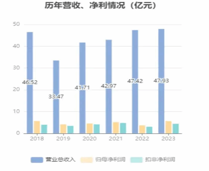 从2018年到2024年,易事特通过不断的市场拓展和产品创新,实现了营业收入和净利润的稳步增长。重组后的易事特过技术创新和市场策略调整,成功提升了盈利水平,后来国资的加入更是为易事特提供了稳定的资金来源,带来了盈利能力的持续显著提升。2023年年报显示,公司实现营收47.93亿元,同比增长1.07%;净利润5.63亿元,同比增长52.81%,毛利率也有所提高。
