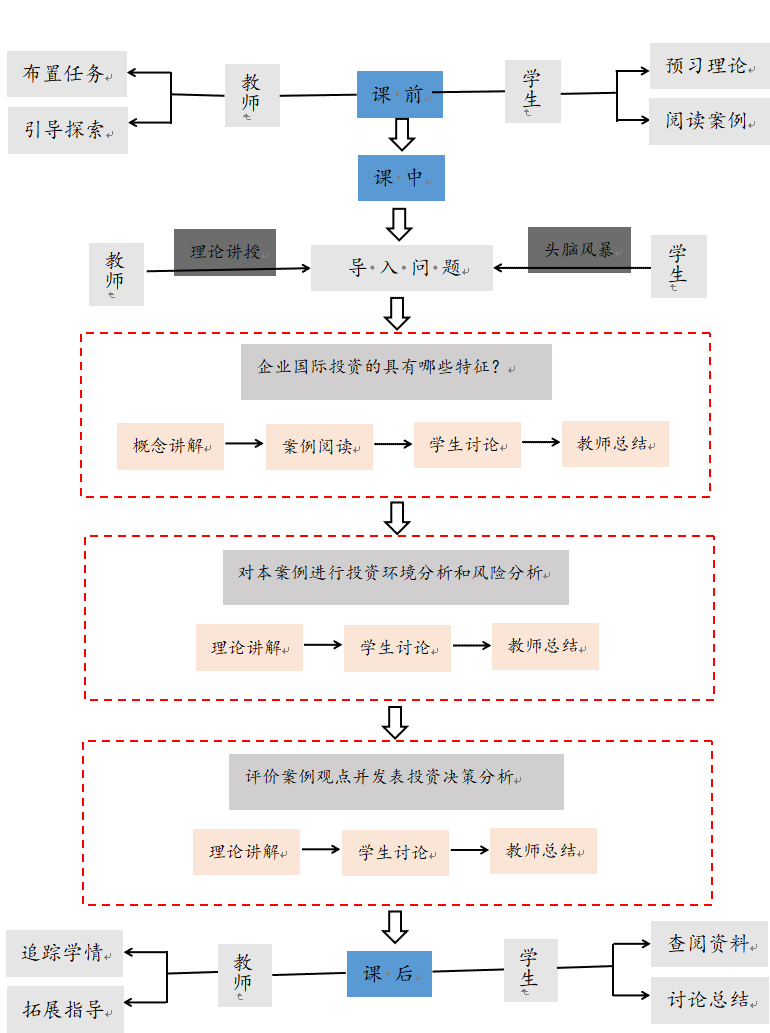 国际投资的环境分析和风险分析的内容和方法 | 结合案例,学生分组讨论“对本案例进行投资环境分析和风险分析”,教师总结 | 20 |