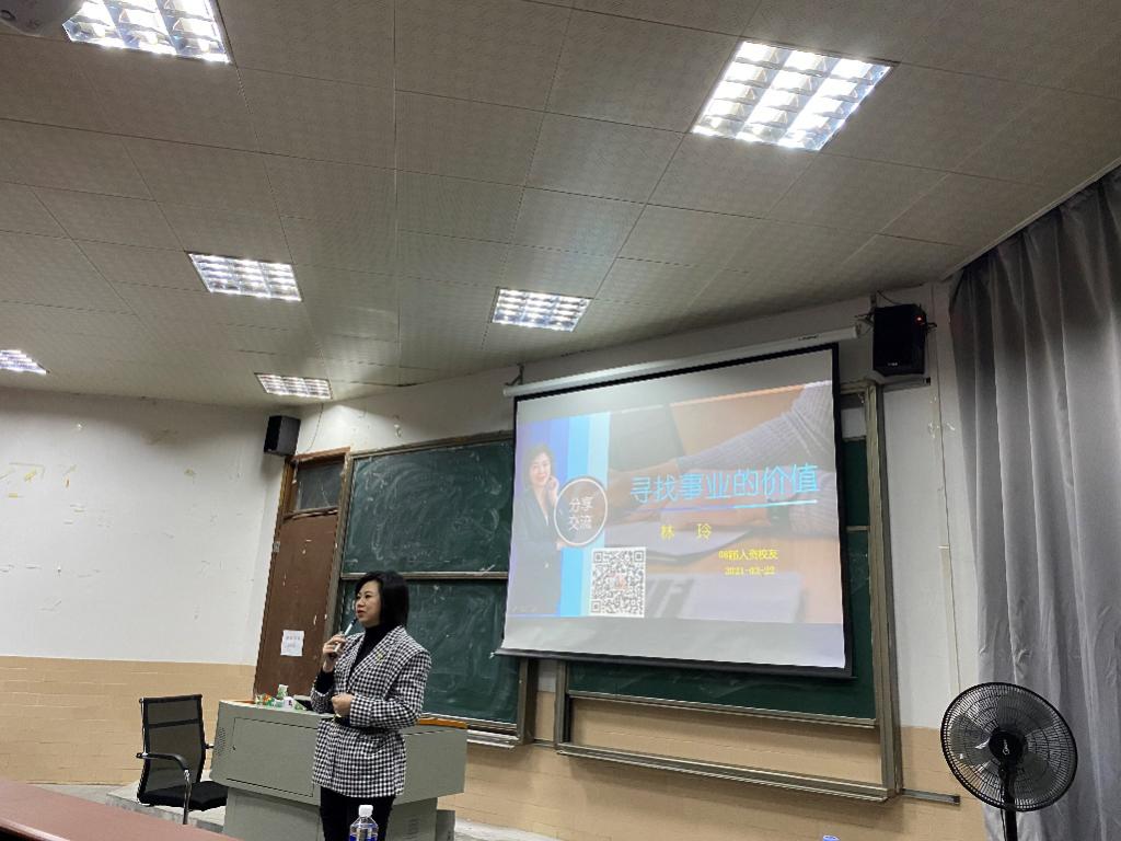 最后,林玲女士让同学们思考如何定义自己的人生价值,并鼓励同学们早日确认职业发展方向并为之奋斗。