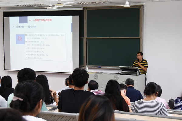 按照市委宣传部统一安排,sunbet,sunbet官网刘川教授作为广东经济形势报告团成员,深入到我市2所高校作了2场“2018年广东经济形势报告会”。