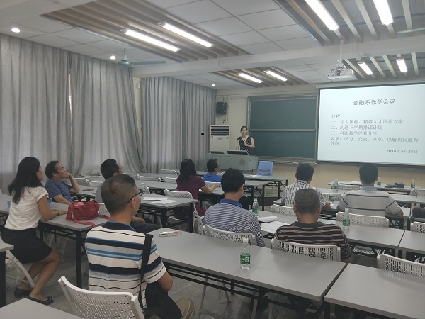 会上,老师们对国标开展了认真的学习和热烈的讨论,一致认为:要谨守国标底线,精心提炼人才培养方案,同时在人才建设上要与国标要求相匹配,增加数学能力较强的金融人才的引进和培养。随后,老师们还就下学期的排课计划进行了沟通和交流。此次金融系科研活动的一大创新是推出了科研教学经验的分享环节。黄琼老师做了题为《加拿大所思所学所悟》的分享、许桂华老师做了题为《STATE软件应用》的分享,分享起到抛砖引玉的作用,得到了其他老师的热烈回应。