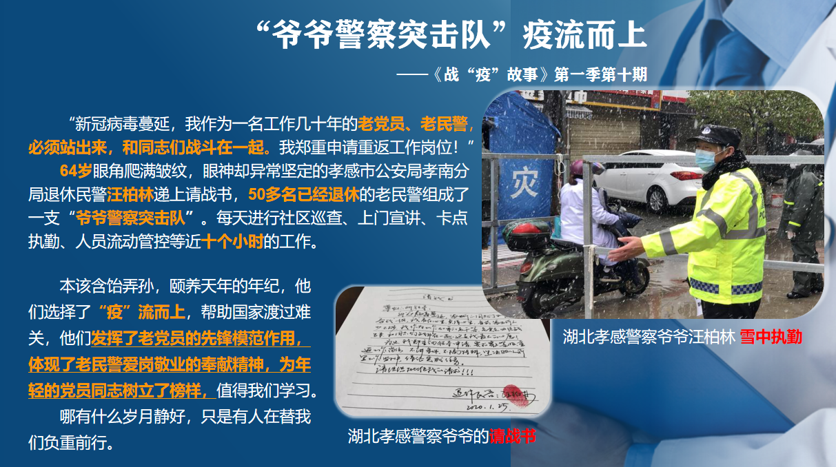 疫情就是命令,防控就是责任。为坚决贯彻落实习近平总书记重要指示精神,引导学生党员积极参与疫情防控工作,发挥榜样力量, 3月26日下午,管理系学生党支部借助微信平台开展“云党日”活动——“敬先锋•润初心”战疫故事学习分享会,全体学生党员参与了此次活动。