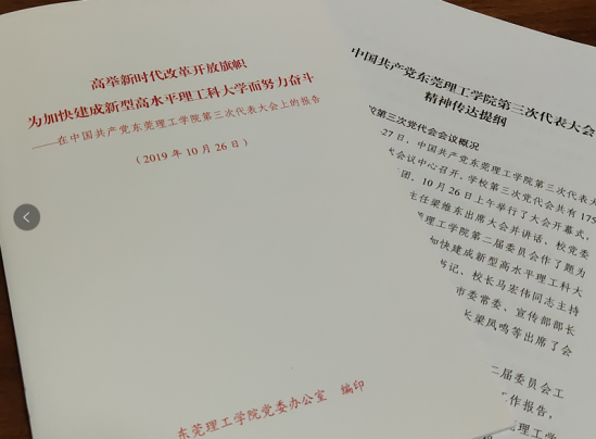 2019年10月30日下午,部分中层干部、正高职称人员、党支部书记、系主任等老师在松山湖学术会议中心参加了学校传达贯彻学校第三次党代会精神暨“不忘初心、牢记使命”主题教育推进会。