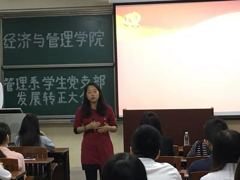 管理系学生党支部临时负责人邓毅青对本次大会作总结,鼓励党员同志们积极参加党内活动,在学习和生活中发挥中共党员的先锋模范作用。