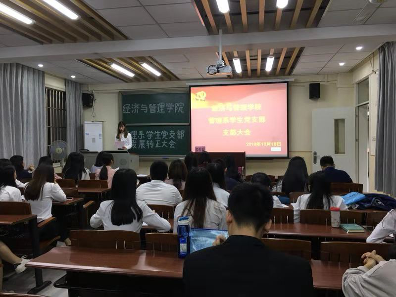 2018年10月18日下午,sunbet,sunbet官网管理系学生党支部于莞城校区3208课室召开全体党员大会。管理系学生党支部临时负责人邓毅青老师、辅导员张新建老师及全体学生党员出席了现场。